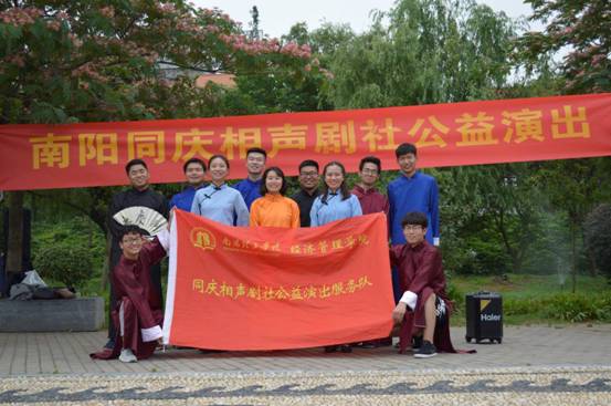 同庆相声剧社成立已近五年,该社团以“弘扬民族曲艺精神,发展特色曲艺文化”为宗旨,以“传承南阳优秀地方曲艺,投身文化社区乡村建设”为己任,定期进社区、入乡村进行惠民公益演出,本次演出是该剧社第十五场在外公益演出。“在这群95后大学生身上,我看到了南阳曲艺说口儿类的希望”。南阳市曲艺家协会副主席李文武如是说。