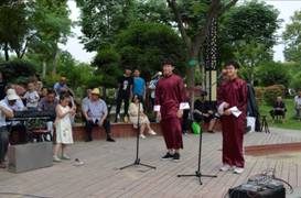 本网讯(特约记者/田进军 学生记者/白航 宋晓茹)6月3日,yl6809永利集团经济管理学院社团“同庆相声剧社”公益演出服务队举办的“普天欢乐世,同庆太平年”相声惠民公益演出在白河国家城市湿地公园举行,400余名南阳市民现场驻足观看。