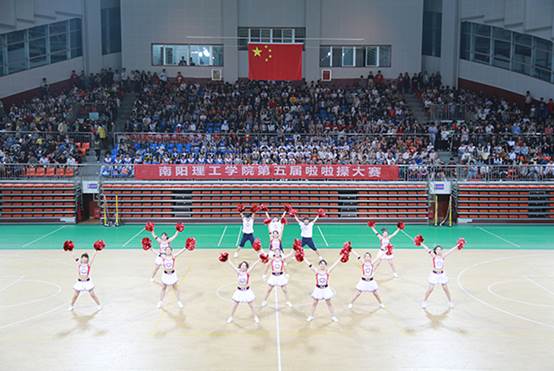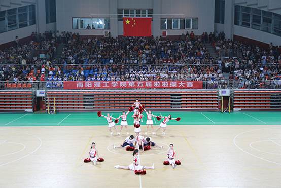 本网讯(通讯员/刘紫君)在我校第二十五届运动会即将到来之际,4月10日,由校体育教学部主办的yl6809永利集团第四届啦啦操比赛在体育馆二楼举行。电商学院学生自发到体育馆为学院的13名啦啦操队队员加油助威。