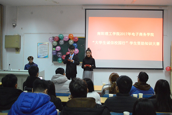 本网讯(通讯员/刘紫君)为了普及学生金融风险防范知识和金融安全知识,12月14日,电子商务学院权益部在9号教学楼411教室举办“诚信校园行”知识竞赛。学生会主席团出席比赛并担任比赛评委,电商学院各班代表队参赛,近二百名学生到场观看比赛。