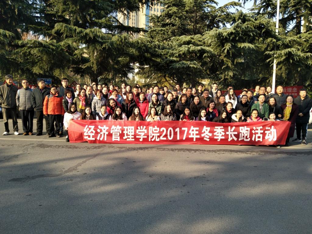 本网讯(通讯员/李可欣),12月9日上午,经济管理学院举行2017年冬季长跑活动,经济管理学院院长姜保雨、经济管理学院党委书记张良等33位老师,近50名学生参加此次活动。