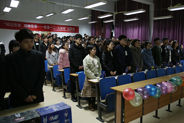 本网讯(通讯员/丁艳)为了纪念“一二•九”运动,培养学生的爱国精神,12月7日,电子商务学院在14号教学楼102教室举办纪念一二•九运动唱响红歌比赛。电商学院17级辅导员张雨爽及党员代表出席比赛并担任评委,全院各班共计330名学生参赛。