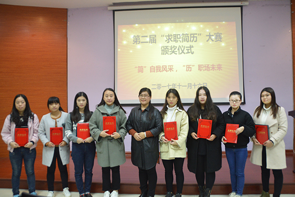 比赛采用上交纸质版和电子版个性化简历的方式进行。我校永利集团处组织创业就业指导教育科教师和简历讲师对进入决赛的选手进行评选,评出一等奖5名,二等奖10名,三等奖15名及优秀奖20名。经过评委评选,电子商务学院学生马璐瑶、吴银虹荣获二等奖,覃丽娟获得三等奖,袁银敏、高荣荣获得优秀奖。