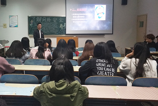 本网讯(通讯员/张凯威)为了增强学生对网络安全的认识,帮助学生界定自身权益是否被侵犯,让学生们充分了解如何维权,增强学生们的自我维权意识,11月12日。电子商务学院在9号教学楼举办“维护自身网络权益”主题班会。