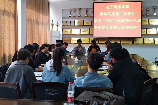 本网讯(通讯员/周东盈)10月19日,电子商务学院在9教304会议室举办学习“习近平总书记在十九大上的报告”主题活动。电子商务学院青年马克思主义学社全体成员参加活动。
