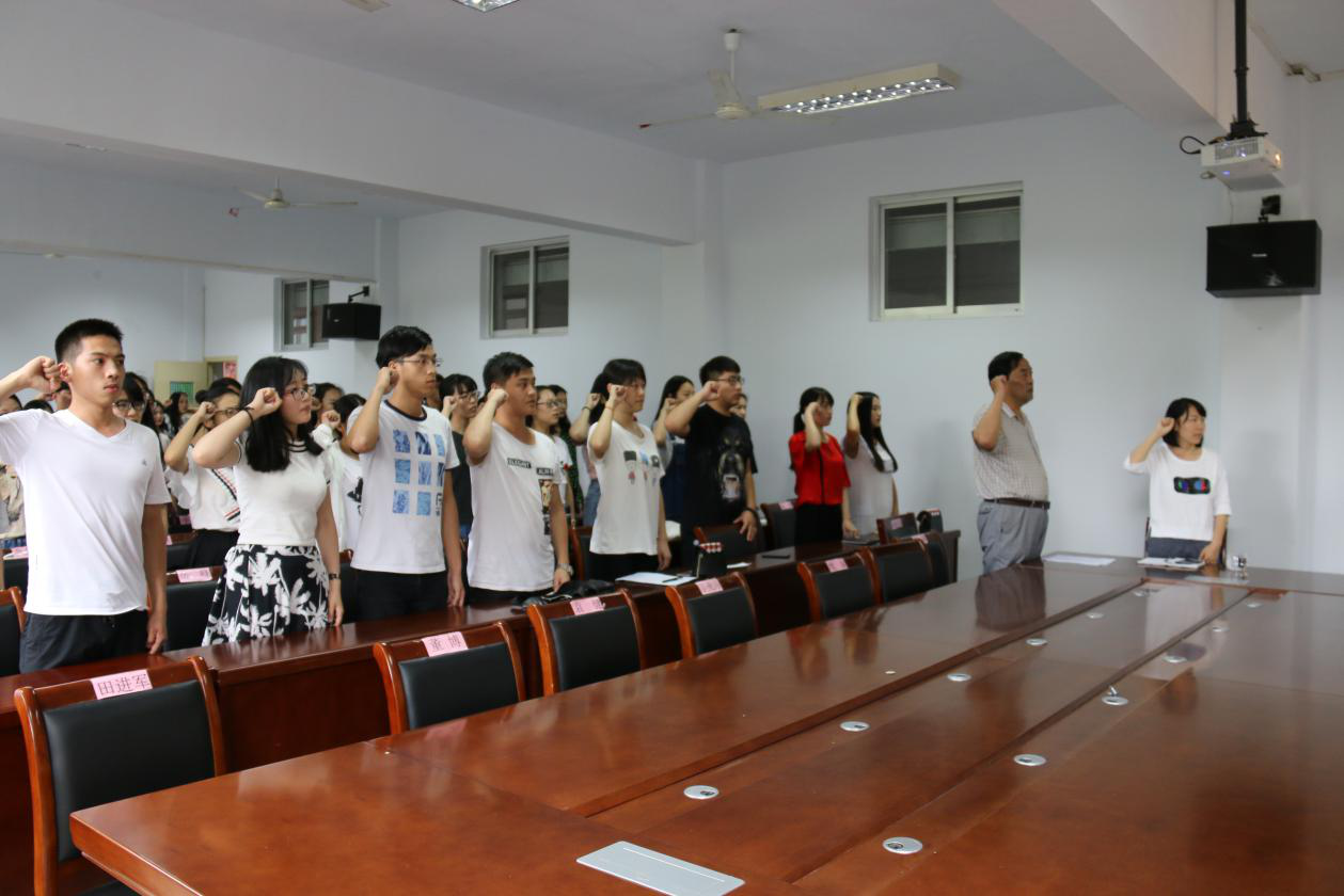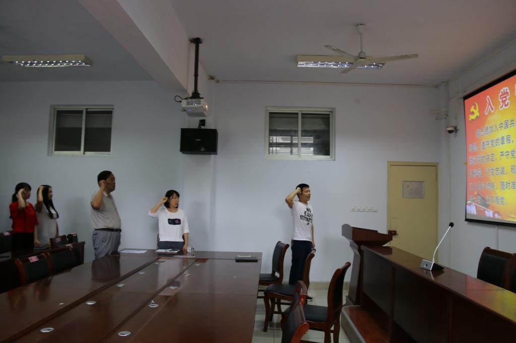 本网讯(学生记者/耿铎)6月26日下午,经济管理学院在九号楼224召开党员宣誓大会暨党课培训大会。大会由经济管理学院党委副书记林茂超主持,支部书记魏颖老师、董博老师出席大会,54名新党员进行入党宣誓。