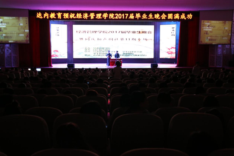 本网讯(学生记者/刘波洋 王亚莉)6月3日晚,经济管理学院2017届毕业生晚会暨同庆相声剧社第十一期专场演出在毕业大厅成功举办。学院相关领导与八百余名师生共同观看本次演出。