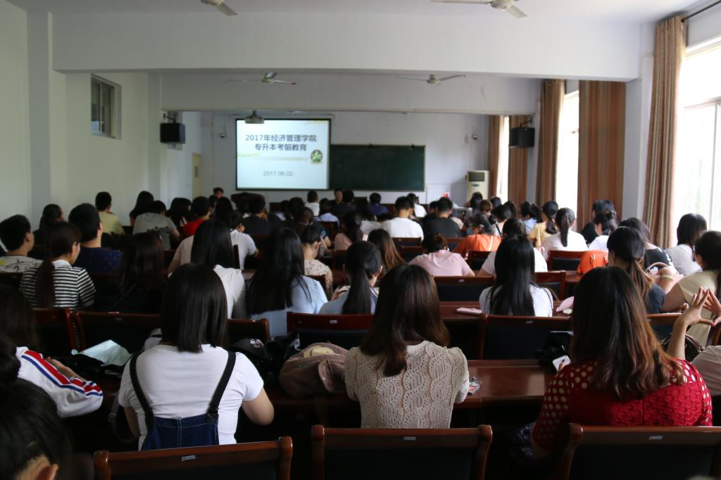 本网讯(学生记者/王玉玺)6月2日,经济管理学院在9224举办2017年专升本考前教育暨专升本‘无声入场‘演练。本次会议由辅导员董博老师主持,专升本128名学生参加。