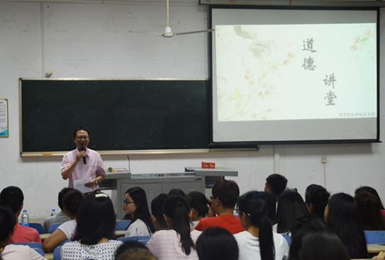 道德讲堂通过身边人讲身边事,将道德认知与道德实践结合起来,以正面的典型,竖起一面道德的镜子,让电商学子深刻品悟道德力量,升华自身境界,引导美德,传承新风尚。(编审/宋姝娴 摄影/沈成凤)