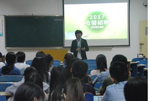 5月15日晚,电子商务学院邀请北京链家房地产经纪有限公司来校举办专场招聘宣讲会,区域经理隋随作招聘宣讲,近百名学生到参加。