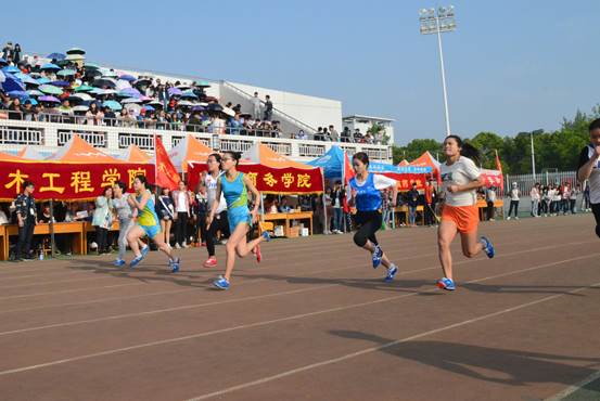 本网讯(通讯员/符晓风)4月14日上午,女子100米比赛在东南校区体育场展开激烈的决赛角逐。