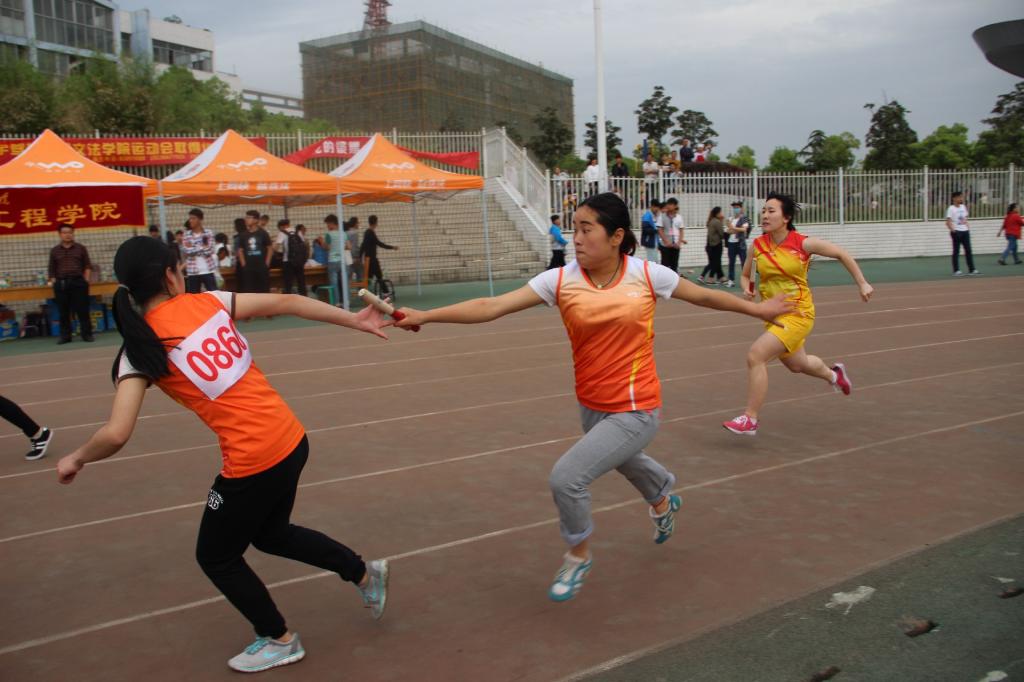 比赛前,每位运动员都在积极地做着热身运动。随着裁判员的一声枪响,运动员们便如离箭的弦,飞快地向前奔跑。赛道旁边的同学纷纷为她们加油打气。待到接力棒传入第四个运动员手中的时候,赛场上的局势瞬间发生了变化。我院队员相对落后,只见第四棒选手奋起直追,赶超前面的对手,并一直保持优势直至终点。最终以第三名的成绩成功晋级决赛。