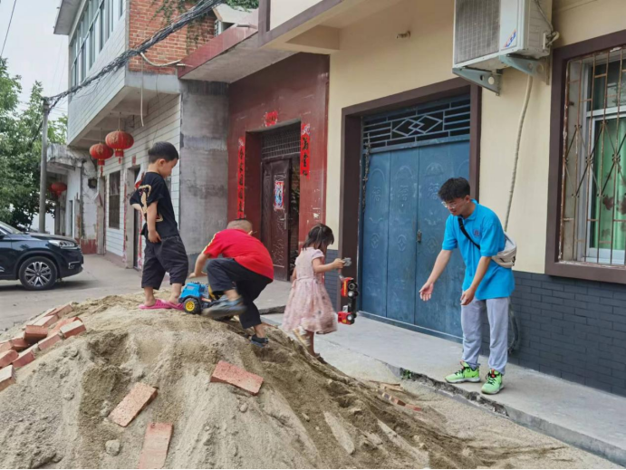 图为实践团队队员在九重镇陪留守儿童玩耍。