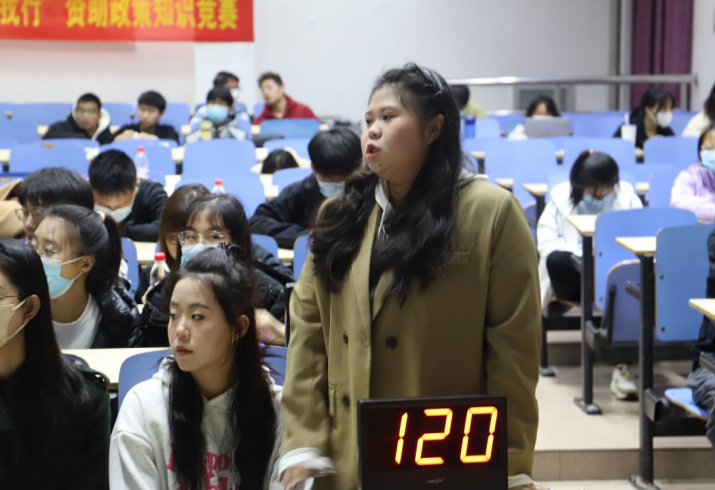 决赛分为个人必答题、集体必答题、抢答题等环节。比赛中,选手们精神饱满、沉着冷静、认真作答。个人必答题环节,选手们遵守规则,把握时机,赛场气氛紧张热烈;集体必答题环节,选手们全力以赴,默契配合,赢得现场阵阵掌声;抢答题环节中,选手们慎重选择,沉着作答。经过激烈的角逐,本次比赛选出一等奖:王鑫雨、朱梦佳、周子媛,二等奖:郑莉、高芮莹、杨子莹,三等奖:张毅、陈晓彤、武亚君,优秀奖:崔佳慧、李树格、王艺珂、廖靖超、吕炬龙、苏远乐。