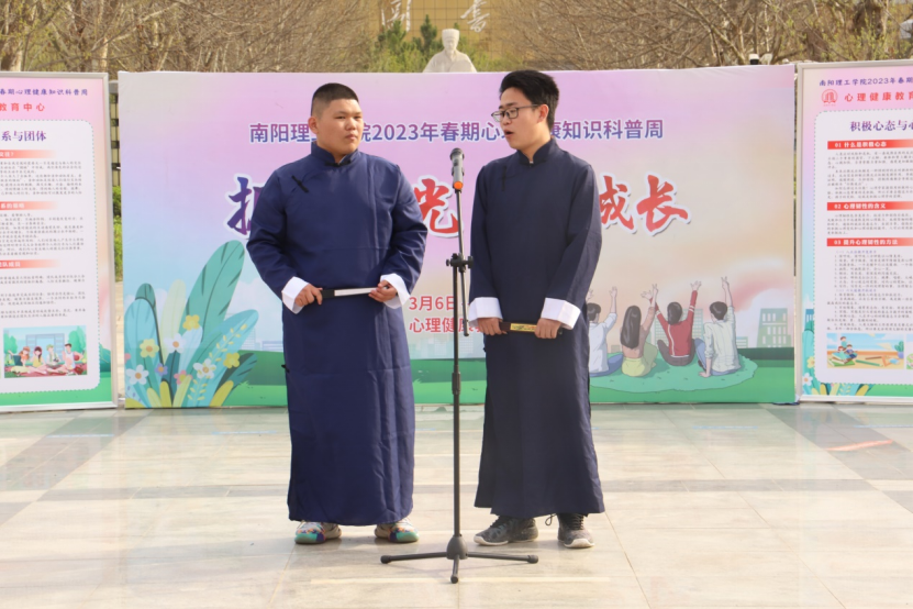 活动现场放置了关于心理健康知识的立牌,并设有逾新茶艺社、书法协会、同庆相声社、读书会友协会四个活动区。同学们可以通过立牌了解相关心理知识,随后在书法、品茶、相声的闲适氛围中缓解心理压力。活动的最后,舞蹈队、同庆相声社也为大家带来了精彩的表演,至此活动完美结束。
