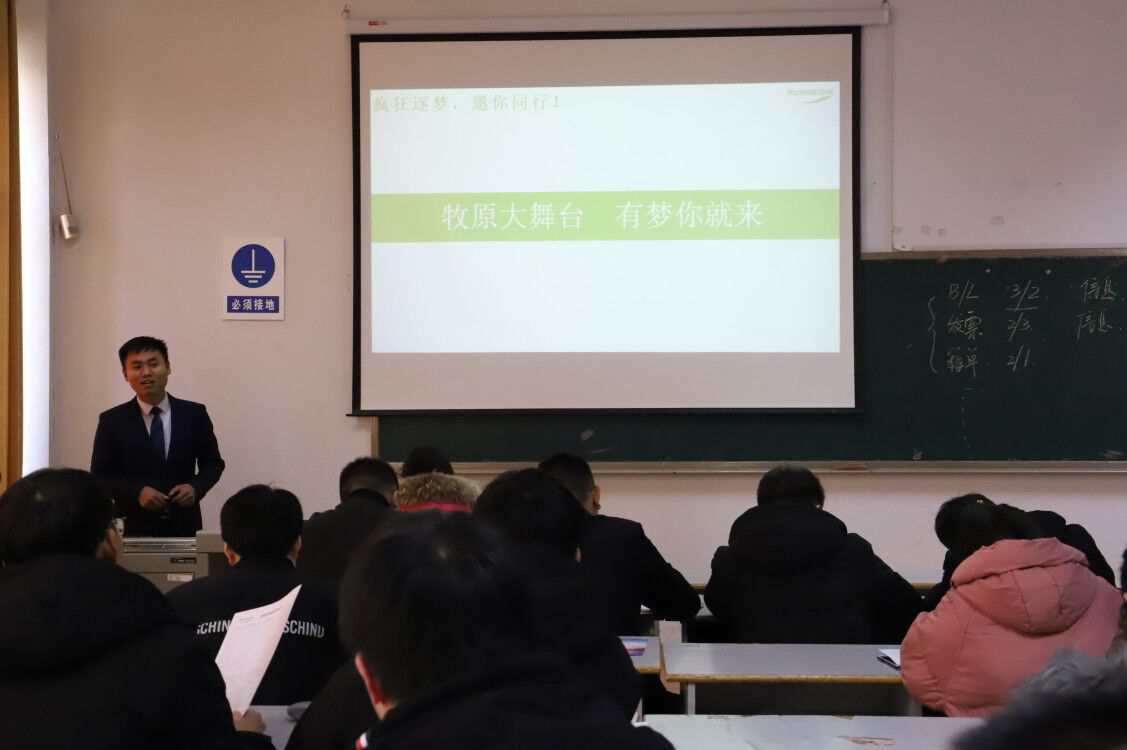 宣讲会开始前,由公司员工为参与宣讲会的同学发放牧原公司招聘简章和招聘信息登记表。本次会议由牧原公司员工石贺龙主持,他首先介绍牧原公司的业务状况,与同行业的对比及牧原公司未来发展规划,又分别讲述了牧原公司的人才需求、薪资待遇、发展现状及发展前景,并将各国商品需求进行对比,简述牧原公司所占的市场份额。与会人员也积极发言,认真解惑,并与公司员工进行深入探讨。