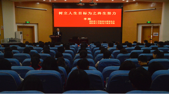 10日上午李刚在中关村二楼报告厅做了以《树立人生目标为之终生努力》为题的报告,他鼓励同学们在大学期间要明晰自身的未来职业发展,通过在校的学习,增加专业知识,逐步接近职业目标。李刚就 “为什么要确立目标”“如何去实现目标”向同学们做了详细阐述。并通过自己的奋斗经历,告诫在座的各位同学要有担当,有责任感,要根据自身情况进行择业。李刚劝诫同学们选择一个目标就一定要坚持下去,为之不懈努力,不轻言放弃,在学习生活中积累知识,提升自我,早日实现人生价值。