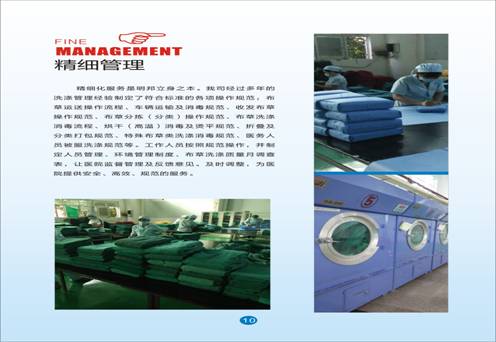 2013年05月17日成立,厂区坐落于交通便利的海口市美兰区桂林经济开发区内。经营范围包括建材、塑胶销售,酒店用品批发,衣服、床上用品洗涤,家政服务,服装、鞋、帽批发及零售等,是目前省内唯一家最具规模、标准的医院布草洗涤企业。企业拥有完善的管理机制并配置标准化的洗涤车间和机械设备,全厂面积约5000平方米,划分为生活区、办公区、车间生产区。车间生产区分为普通洗涤车间、医生制服洗涤车间和重污染洗涤车间。普通洗涤车间分为消毒分拣区、水洗区、烘干区、烫平折叠区、存货区、发放区及污区与净区人员工作通道,采用单向输送模式,严格把控安全无污染的生产流程标准。现,我们未雨绸缪,引进最先进设备,建设专业化工厂,设立医疗织物洗涤化验室及水质化验室,与国际医疗洗涤业紧密接轨,实现服务品质的飞跃。