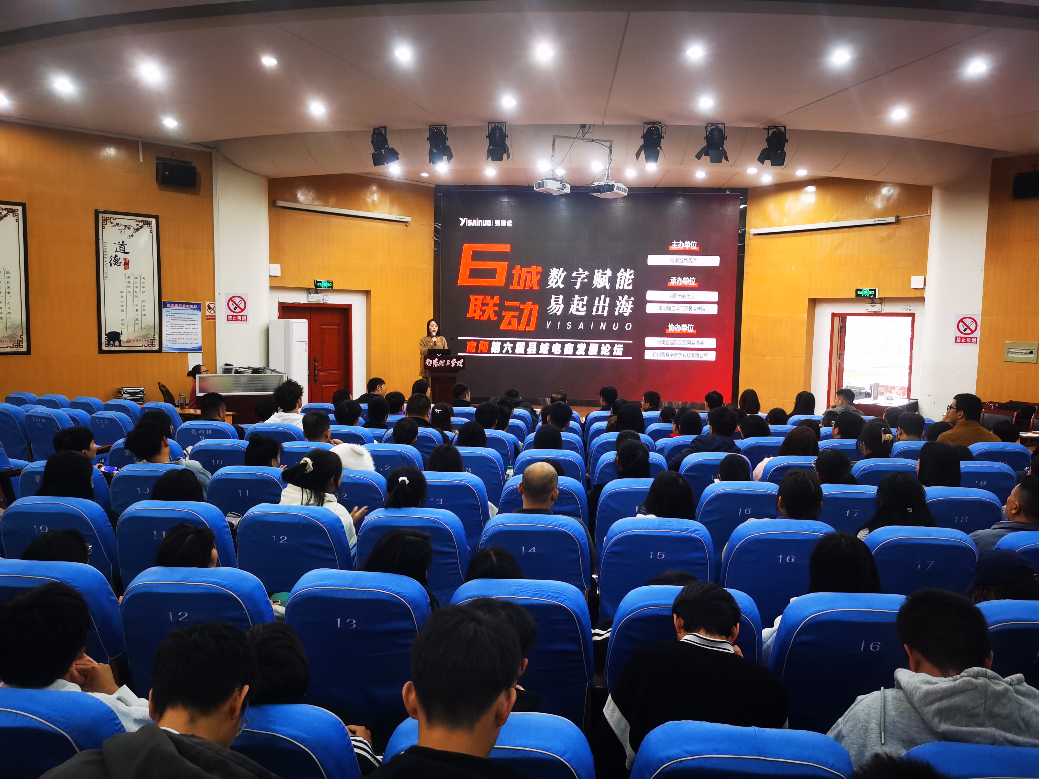 本网讯(特约记者/李浩)11月9日,由河南省商务厅主办、南阳市商务局和yl6809永利官网集团承办的“6城联动 数字赋能 易起出海”南阳站暨南阳第六届县域电商发展论坛在我校中关村报告厅成功举行。南阳市商务局副局长刘剑刈、河南国际贸易网商协会秘书长马克、yl6809永利官网集团相关负责人出席会议。