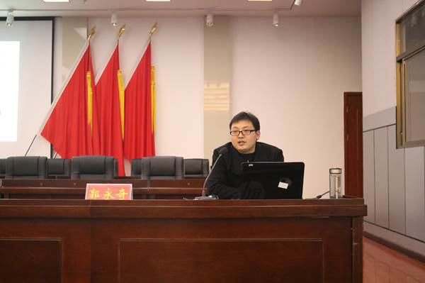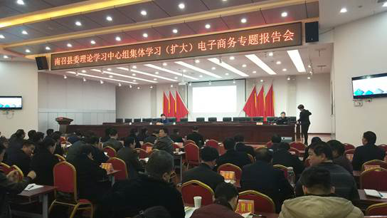 11月29日,电子商务学院副院长、南阳市电子商务专家委员会委员郭永奇博士赴南召县,为南召县委理论学习中心组集体学习(扩大)电子商务专题讲报告。南召县委书记刘永国主持,南召县四大家领导,各乡镇、县直一级单位一把手参加学习。