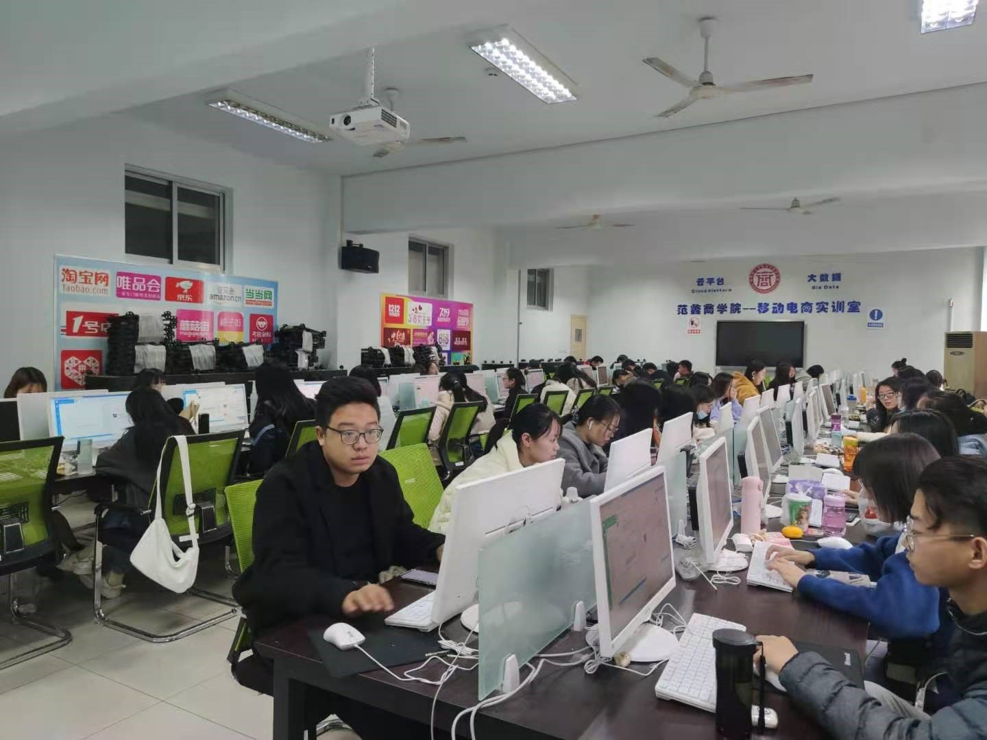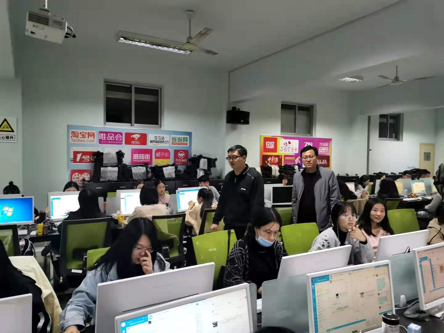 “双十一”晚上,yl6809永利官网集团党委书记张良、院长吴战勇、副院长郭永奇等一行来杭州老板电器“双十一”yl6809永利集团分会场,观摩了老板集团2020年京东家电狂欢节盛典。本次电商实践项目10月7日至11月20日为期七周,yl6809永利官网集团215名学子参加了“双十一”活动。此次活动分为培训、顶岗实战两个阶段,首先老板电器股份有限公司委派企业骨干对学生进行了系列培训,熟悉业务后学生开始京东老板自营旗舰店的产品导购、售前售后服务等顶岗实战工作。