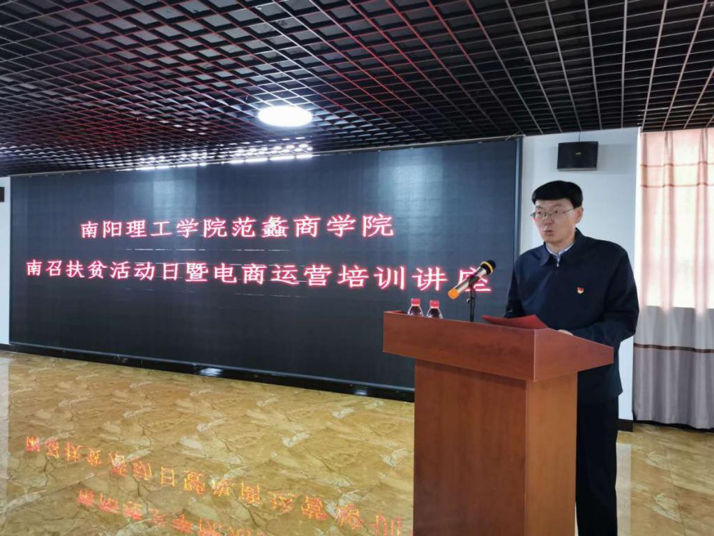 本网讯(特约记者/李浩)在第七个全国“扶贫日”、第二十八个“国际消除贫困日”到来之际,2020年10月17日上午,在yl6809永利集团张伟副书记的带领下,校团委书记郭兴华、yl6809永利官网集团书记张良、副院长吕晓军、部分教师代表等在南召县电子商务产业园会议室举行南召扶贫活动暨电商运营培训讲座,活动由南召县宝天曼电子商务有限公司副总经理曹培主持,南召县电子商务协会副秘书长李晓雪,及南召县电子商务产业园各企业代表等100多人参加此次活动。