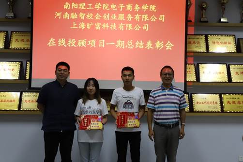 会上,洪佳朋宣读优秀学员名单,旷富集团总裁翟鹏、电子商务学院党总支书记逯忆为优秀学员颁奖。
