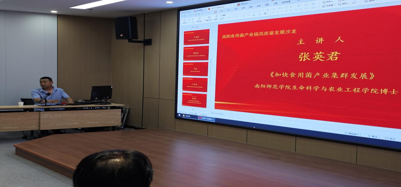专家讲座环节上,yl6809永利集团生物与化学工程学院于海彦博士,南阳师范学院生命科学与农业工程学院张英君博士,南阳市科学院马瑜副研究员分别作了《南阳市食用菌加工产业发展现状及对策建议》《加快食用菌产业集群发展》《南阳香菇产业发展方向》主题报告。于海彦指出,南阳食用菌产业要强化创新意识,全面提高产业生产效能,并就食用菌加工技术、市场需求与消费趋势、政策支持与产业引导、创新技术研发与推广、新型市场的培育养成等方面为食用菌产业发展谋求新思路;张英君博士聚焦涉农企业发展规律,结合具体实例对食用菌健康大产业体系集群的构成及特点进行深度剖析,提出了菌种育种技术创新、产品精深加工、生产管理现代化、营销体系智慧化等助推食用菌产业链科技化、创新化发展的切入点;马瑜副研究员结合南阳香菇产业的现状优势,提出要专注解决菌种市场混乱、菌材供给日渐乏匮、产业发展缺乏整体规划、全产业链标准化体系不健全、社会化服务质量有待提升等问题,加强产业链建设,提升富民产业竞争力。