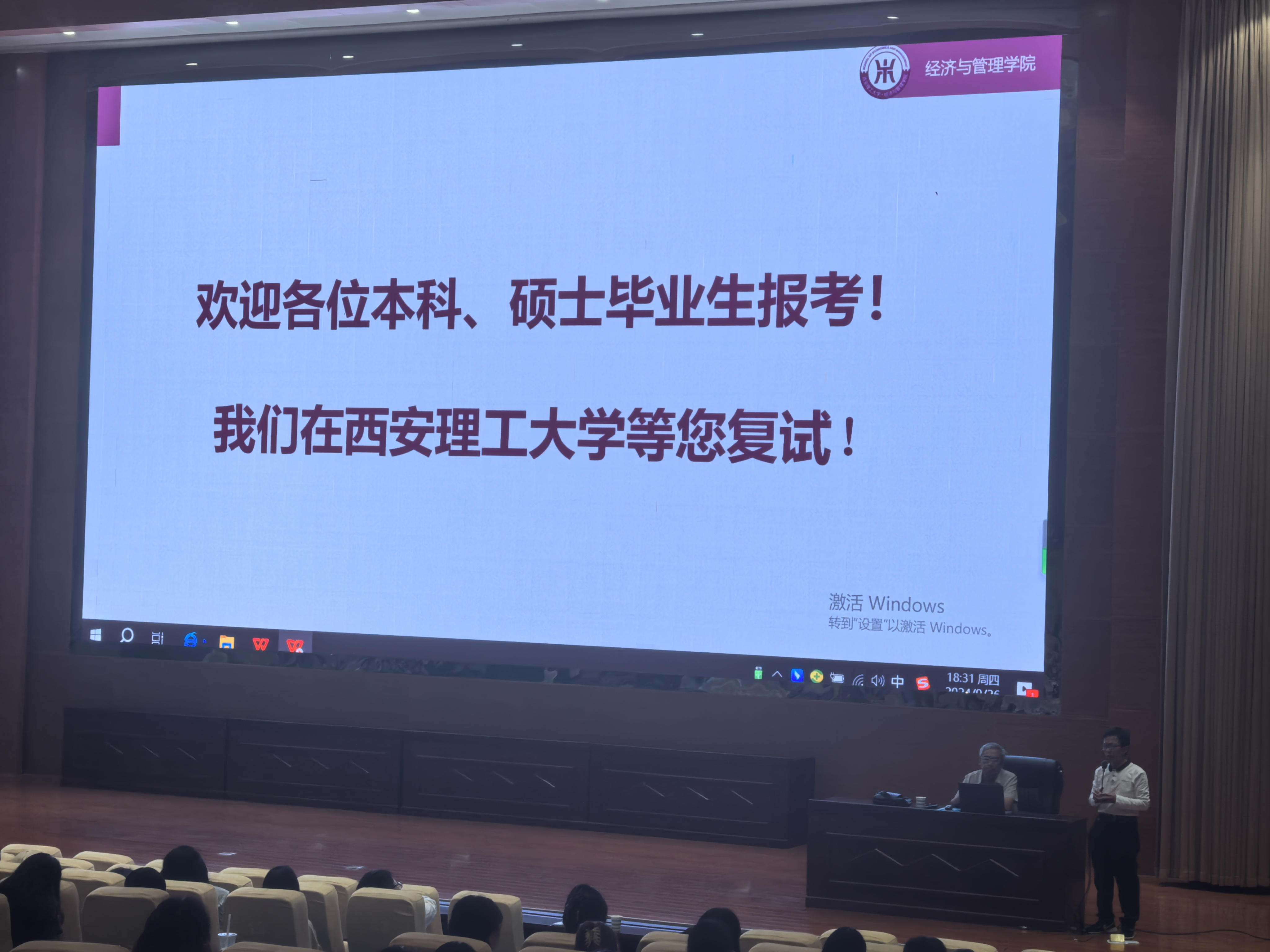 学术报告会之后,扈文秀教授分析了当前的考研形势,介绍了西安理工大学经济与管理学院硕士研究生的招生情况,并从报考建议、报考流程、专业选择、学习方法等方面展开具体讲解。他鼓励学生提早规划,明确目标,强调结合自身情况选择专业方可制定合理的备考策略。