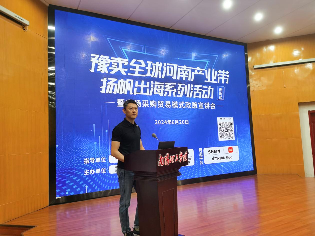 牛犇指出,近年来随着跨境电商的快速发展,跨境电商与特色产业实现深度融合,“跨境电商+产业带”模式已成为跨境电商的重要发展趋势。各级管理部门和企业积极学习借鉴知名平台出海的经验做法,积极与平台进行对接合作,更好把握市场机遇,促进南阳产业带企业跨境出海。市场采购贸易模式为破解中小跨境电商及传统外贸企业无票出口与税务合规难题开辟了新渠道,希望南阳跨境电商和外贸企业认真学习,通过开展市场采购贸易业务,带动全市外贸出口数据提升。