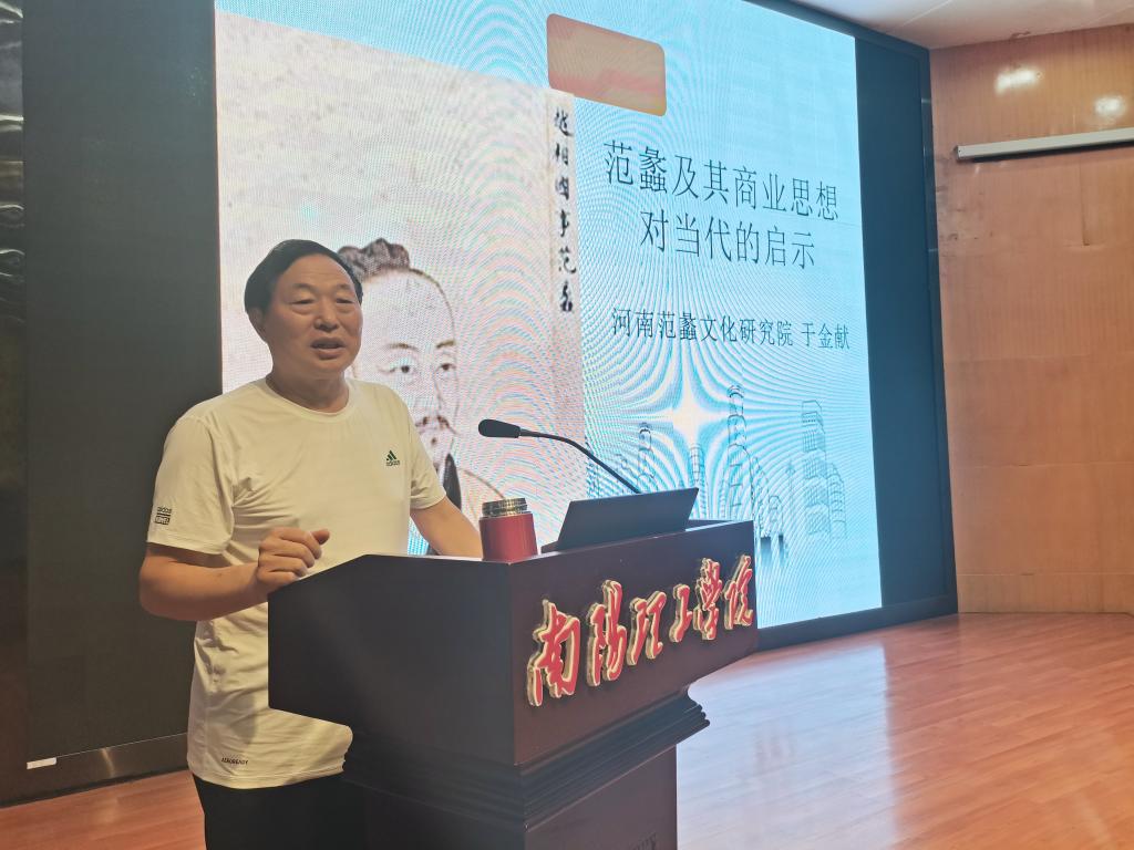 本网讯(特约记者/范荣华 彭博)6月9日上午,河南省范蠡文化研究院副秘书长于金献来我院做主题为“范蠡及其商业思想对现代的启示”的学术报告,学院教师代表与300余人学生参加了学术报告会。