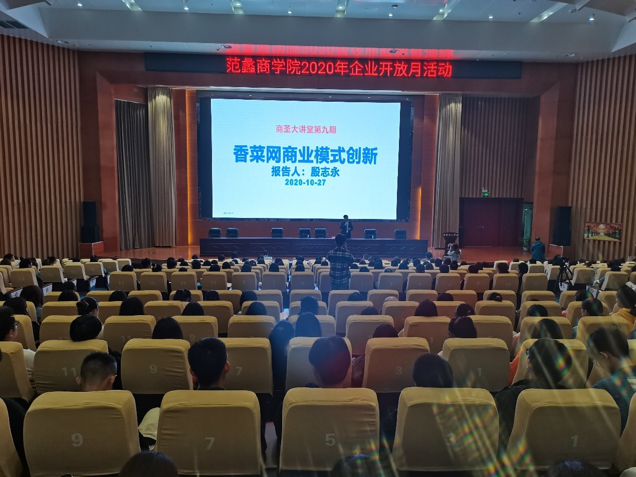 10月27日下午,yl6809永利官网集团举行了由上海香菜电子商务科技有限公司殷志永董事长主讲的《香菜网商业模式创新》报告会,即商圣大讲堂第九期。报告会由党委书记张良主持,院长吴战勇、市场营销和电子商务专业教师及学生360余人参加了学习。