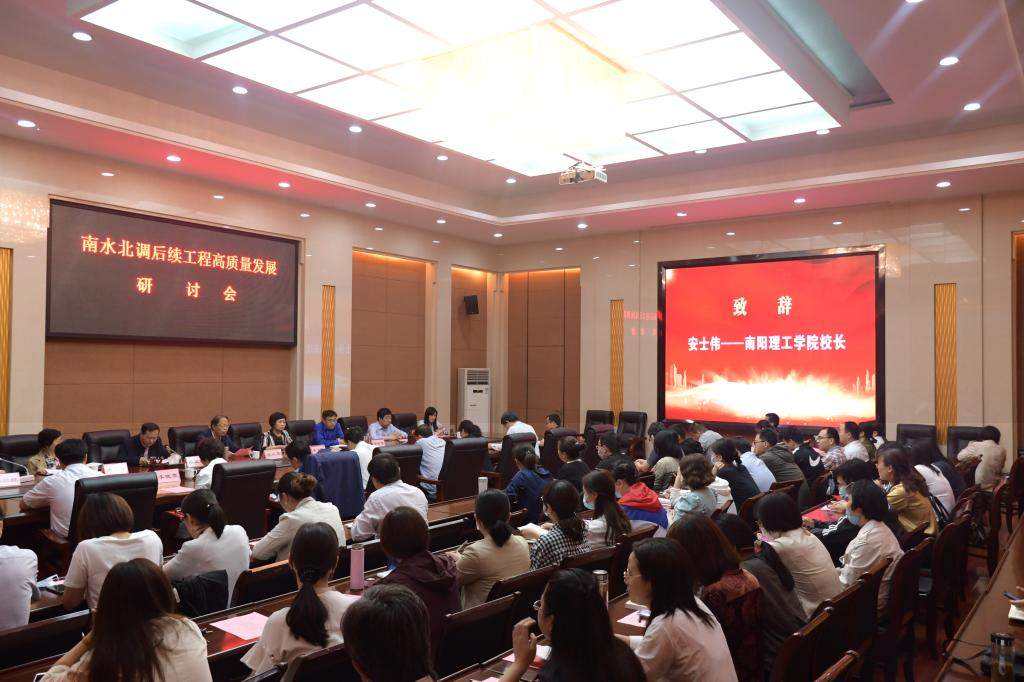 本网讯(特约记者 李浩 剧静宜)5月24日,我校成功举行了南水北调后续工程高质量发展研讨会。校长安士伟、南阳市南水北调工程运行保障中心党委委员、常务副主任张亚坤出席会议并致辞,副校长张爱红主持会议,副校长肖泽昌出席会议。河南财经政法大学原校长李小建、河南财经政法大学副校长朱金瑞、南水北调与水利科技编辑部责任编辑李素丽、河南工程学院管理工程学院院长李红艳、yl6809永利官网集团教授朱九龙分别做了主题报告。会议由科研管理处组织、yl6809永利官网集团承办,审计处、建筑学院、郑州大学南阳研究院等单位负责人、部分教师代表以及南阳师范学院部分教师代表共80余人参加了会议。