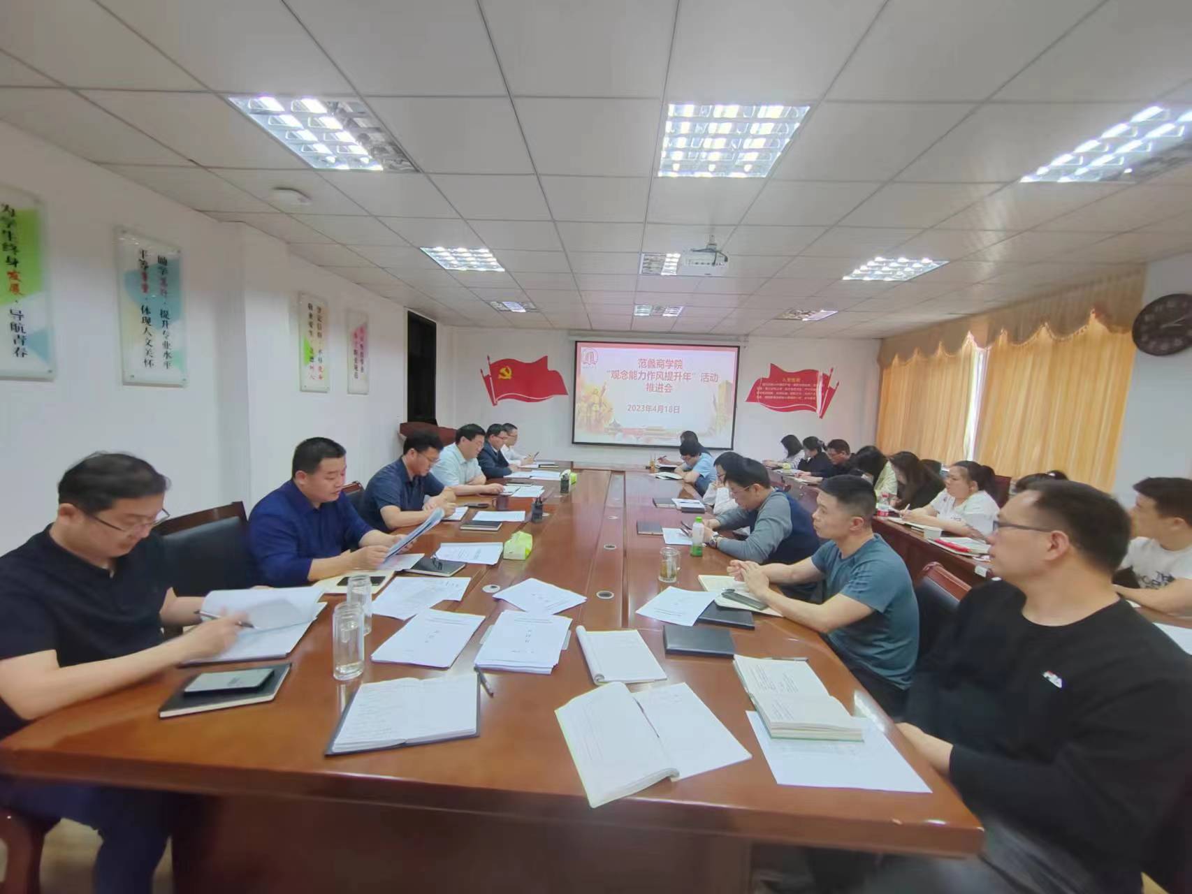 本网讯(特约记者/王健平)4月18日,yl6809永利官网集团召开“观念能力作风提升年”活动推进会,会议旨在动员全院党员干部弘扬“四敢”精神,践行“四个极限”,把状态提起来,把劲头鼓起来,把本领强起来,把作风实起来,切实推动学院高质量发展。yl6809永利官网集团全体科级以上干部和支部书记参加会议。