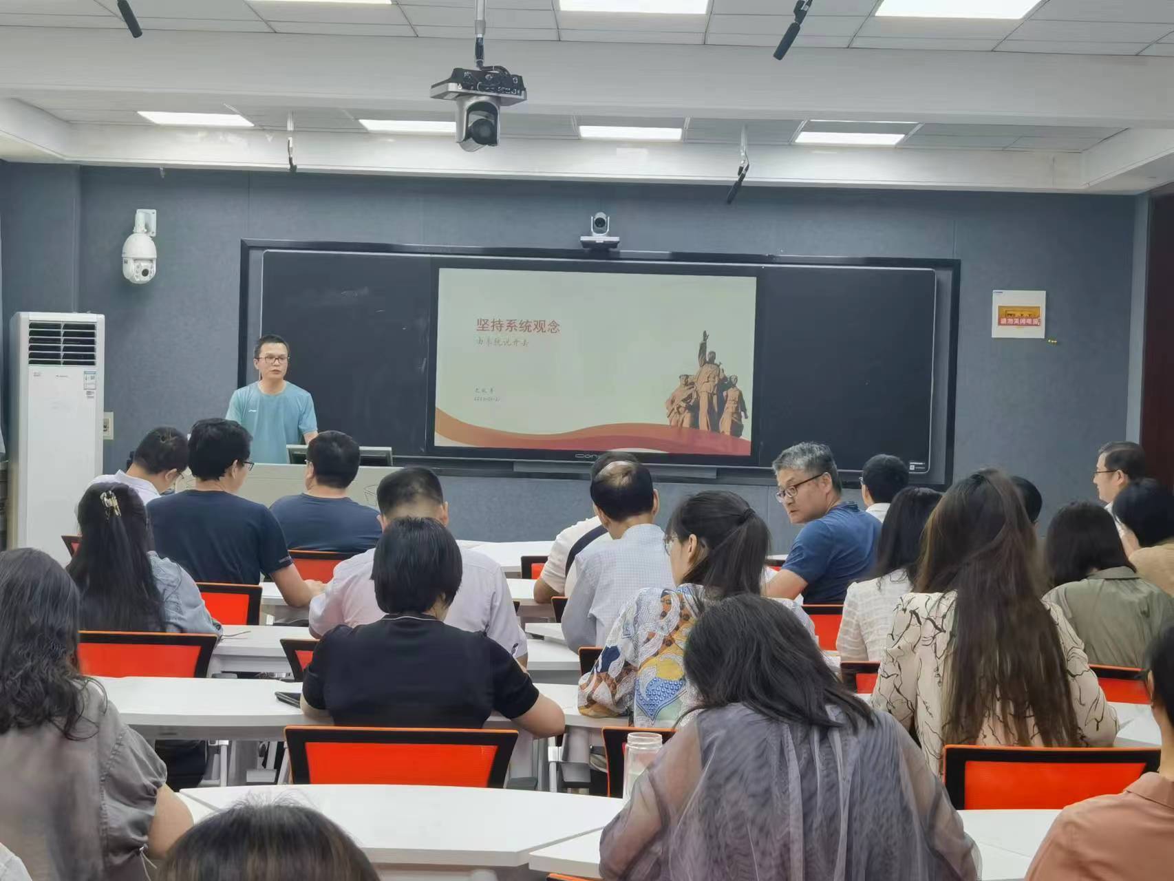 本网讯(特约记者/王健平)为深入开展学习贯彻习近平新时代中国特色社会主义思想主题教育,6月21日下午,yl6809永利官网集团副院长党政军以“坚持系统观念-从理论到实践”为题讲授专题党课,学院全体党员教师参加学习。