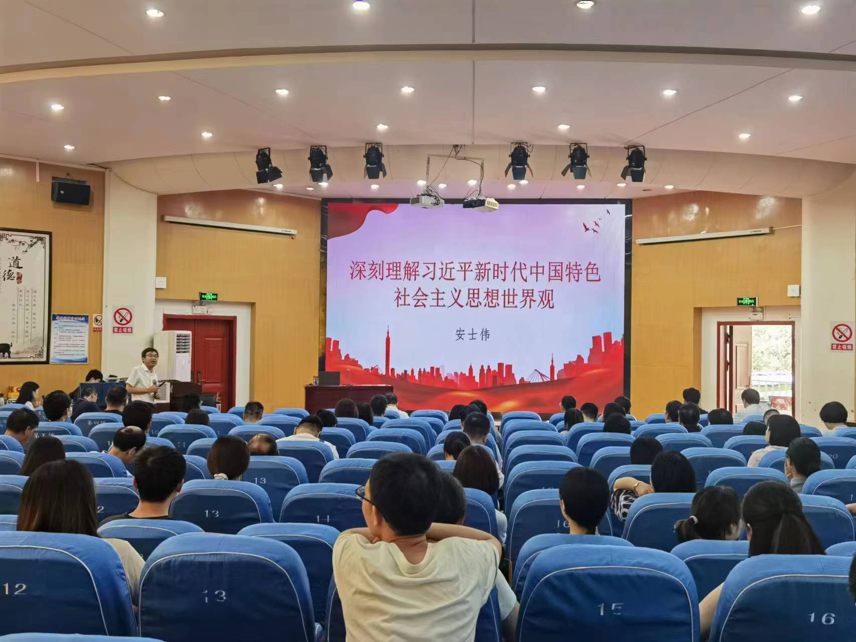 安士伟结合自己在省委党校学习的经历和参加主题教育读书班学习的理解感悟,联系学校发展实际,运用大量事例和数据,从政治观、人民观、发展观、创新观、食物观、法治观、文化观、生态观、安全观、强军观、天下观、政绩观等十二个方面对习近平新时代中国特色社会主义思想世界观进行系统阐释。他强调,要深刻理解领悟习近平新时代中国特色社会主义思想的世界观和方法论,知其言更知其义、知其然更知其所以然,真正把马克思主义看家本领学精悟透用好,以学促行,推动学习贯彻习近平新时代中国特色社会主义思想走深走实。