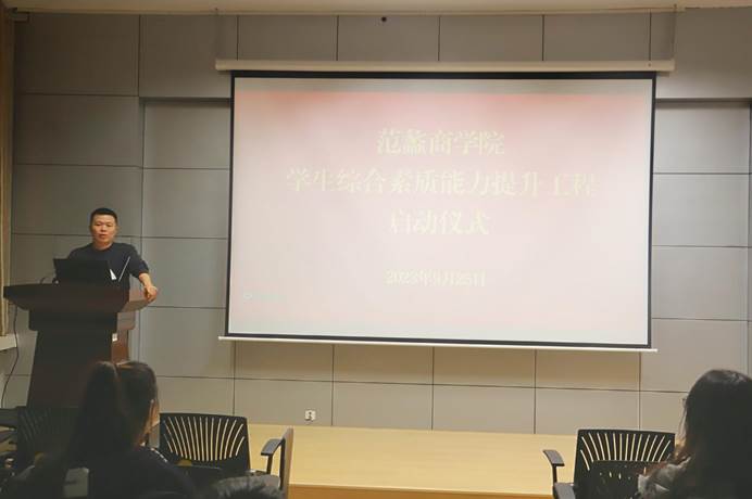 本网讯(通讯员/赵小淇)为引导学生在知识、能力、素质等方面协调发展,培养德、智、体、美、劳全面发展的社会主义事业合格建设者和可靠接班人,9月25日晚,yl6809永利官网集团于1教215教室举行学生综合素质能力提升工程启动仪式。我院党委副书记李冬生、辅导员董博老师出席,21级、22级班委、23级学生代表参加此次启动仪式。