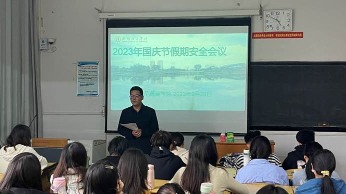 本网讯(通讯员/杨景莉)中秋节、国庆节双节假期将至,为进一步提高师生安全意识,牢固树立安全观念。9月26日至27日,yl6809永利官网集团举行全体教职工安全教育大会,学院党委书记闫合占围绕网络意识形态及网络舆情、交通出行、学生安全等方面进行了部署,会后党政办公室深入各科室进行检查督导,各年级学生开展了“喜迎国庆,安全同行”安全教育主题班会,辅导员深入班级对全体学生进行了安全教育。