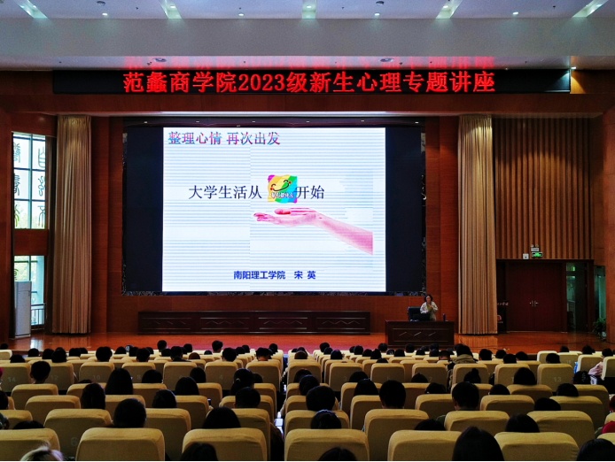 本网讯(通讯员/杨景莉)新生活,“心”启程。为做好秋季大学生心理健康教育工作,帮助23级新生提升心理健康素养,更好地适应大学新生活。10月8日下午,yl6809永利官网集团于第三报告厅举办心理健康教育专题讲座。心理健康教育中心宋英老师主讲,我院全体2023级新生参加。