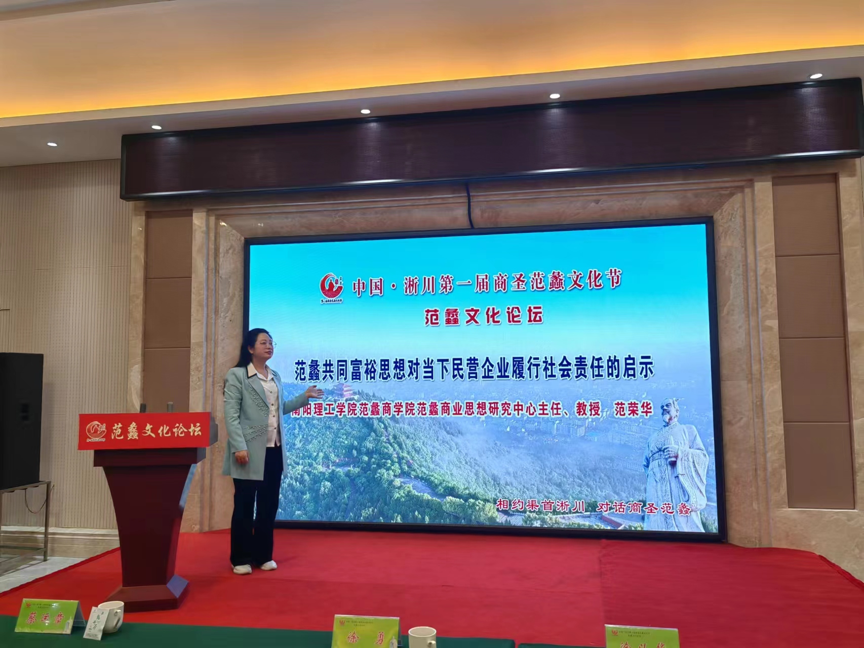 论坛上,范荣华做了主题为《范蠡共同富裕思想对当下民营企业履行社会责任的启示》的学术报告。