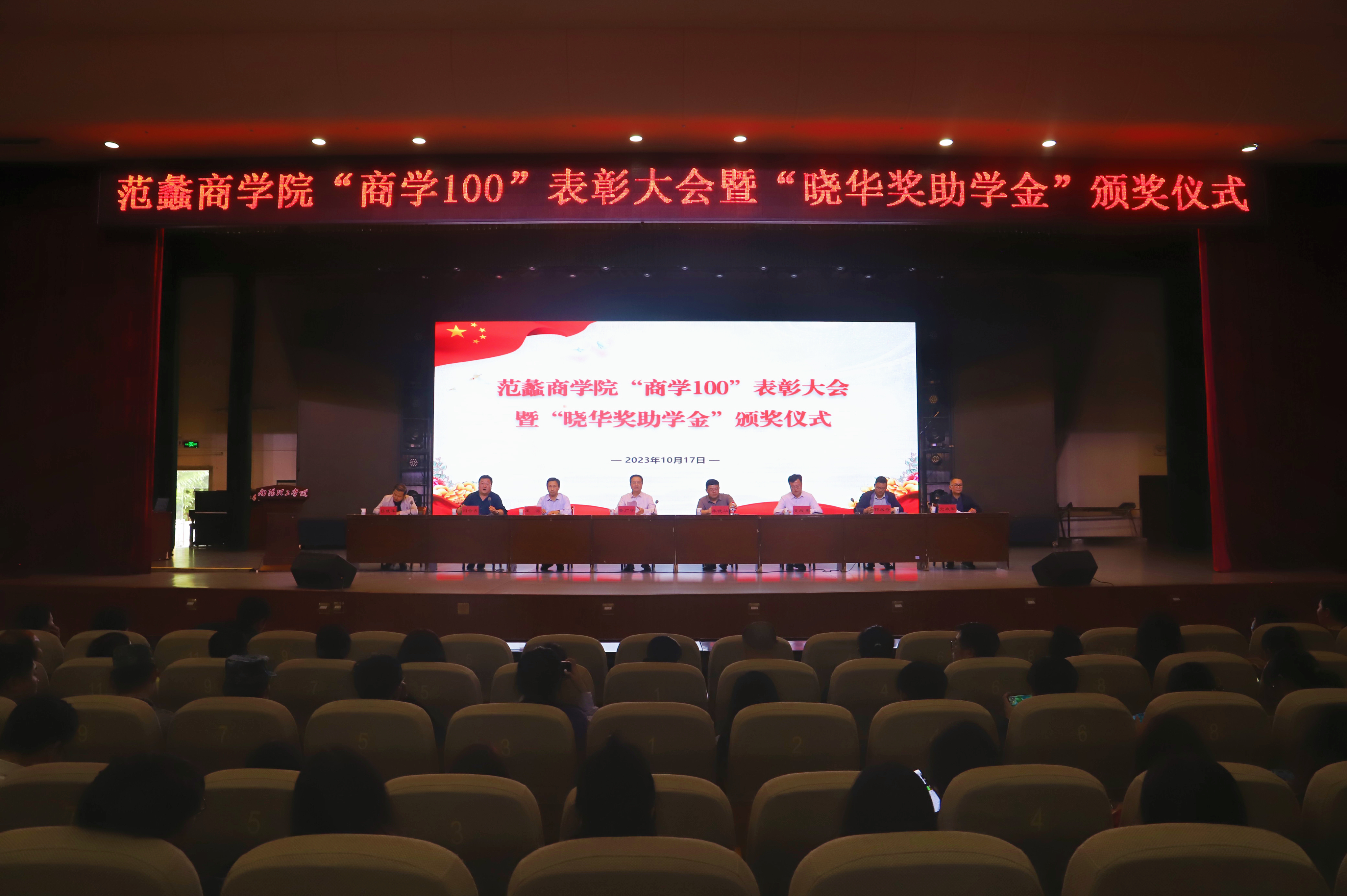 本网讯(特约记者/韩正)2023年10月17日,yl6809永利官网集团“商学100”表彰大会暨“晓华奖助学金”颁奖仪式在毕业大厅隆重举行。副校长蔡广宇、教育发展基金管理办公室相关负责人、晓华奖助学金创办人朱晓华、yl6809永利官网集团领导班子出席本次会议,yl6809永利官网集团全体教师和学生代表参加会议。