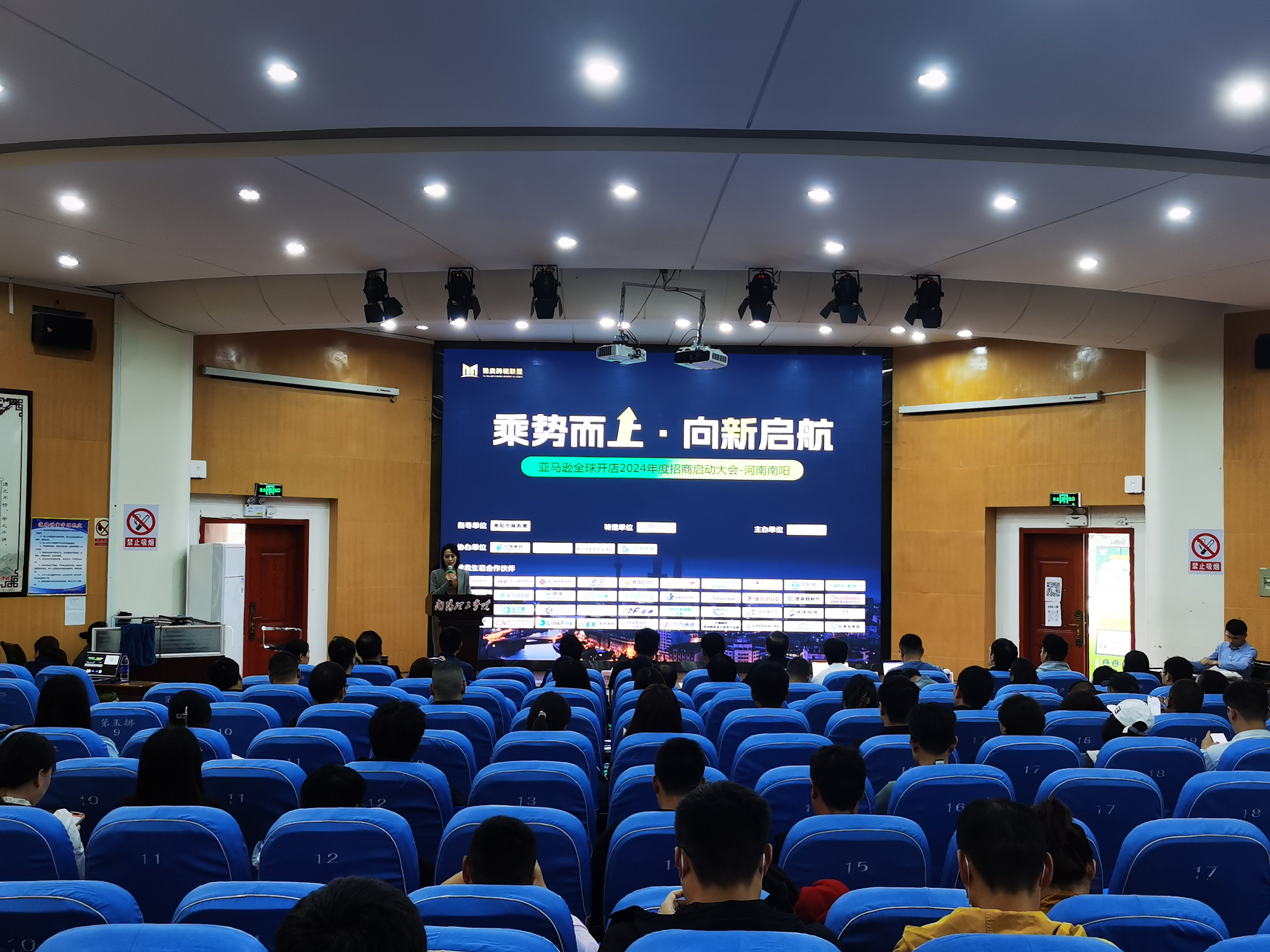 本网讯(学生记者/刘昊)10月25日,主题为“乘势而上·向新启航”的亚马逊2024年度招商启动大会(河南南阳站)在我校中关村报告厅成功举行。南阳市商务局党组成员、副局长刘剑刈,亚马逊全球开店(华北区域拓展)负责人徐奎章,yl6809永利官网集团相关负责人出席会议,会议由yl6809永利官网集团教师李玉主持。