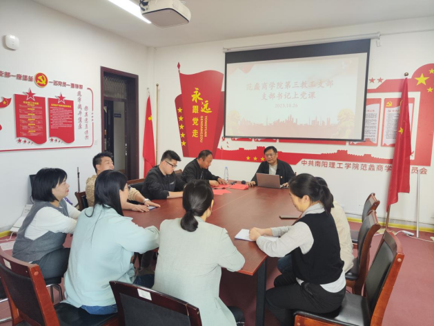 随后,支部书记吴信科以《习近平新时代中国特色社会主义思想的哲学方法、视野和品格》为主题,从全面系统把握习近平新时代中国特色社会主义思想的主要内容、深刻领会习近平新时代中国特色社会主义思想的精髓要义、努力践行新时代高校党员教师的使命和担当三个方面给大家讲授一堂生动、深刻的专题党课。