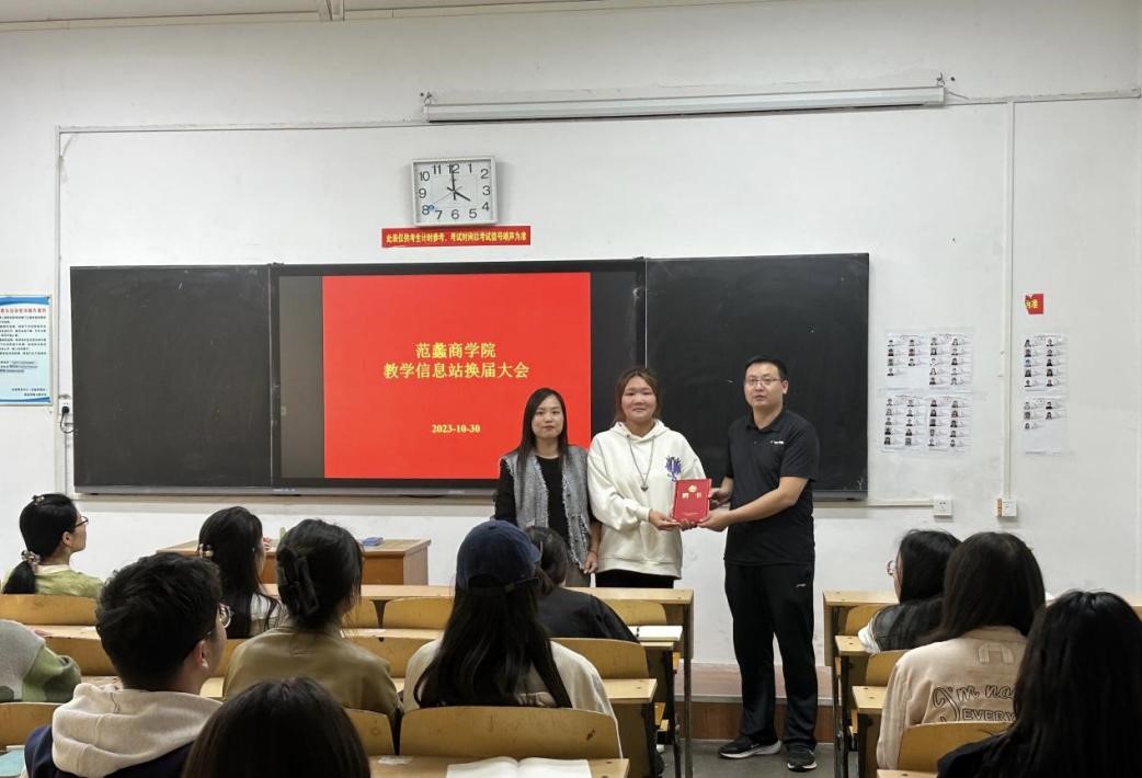 会上,郭永奇为新一任信息站站长颁发了聘书。他对信息站及信息员在日常教学工作的督促监督工作予以肯定,对教学评估中教师课堂教学质量起到了良好的促进效果。他指出作为日常教学运行的监督者,信息员要秉持公平公正的态度,提高意识并客观准确的记录反馈每天的教学情况。