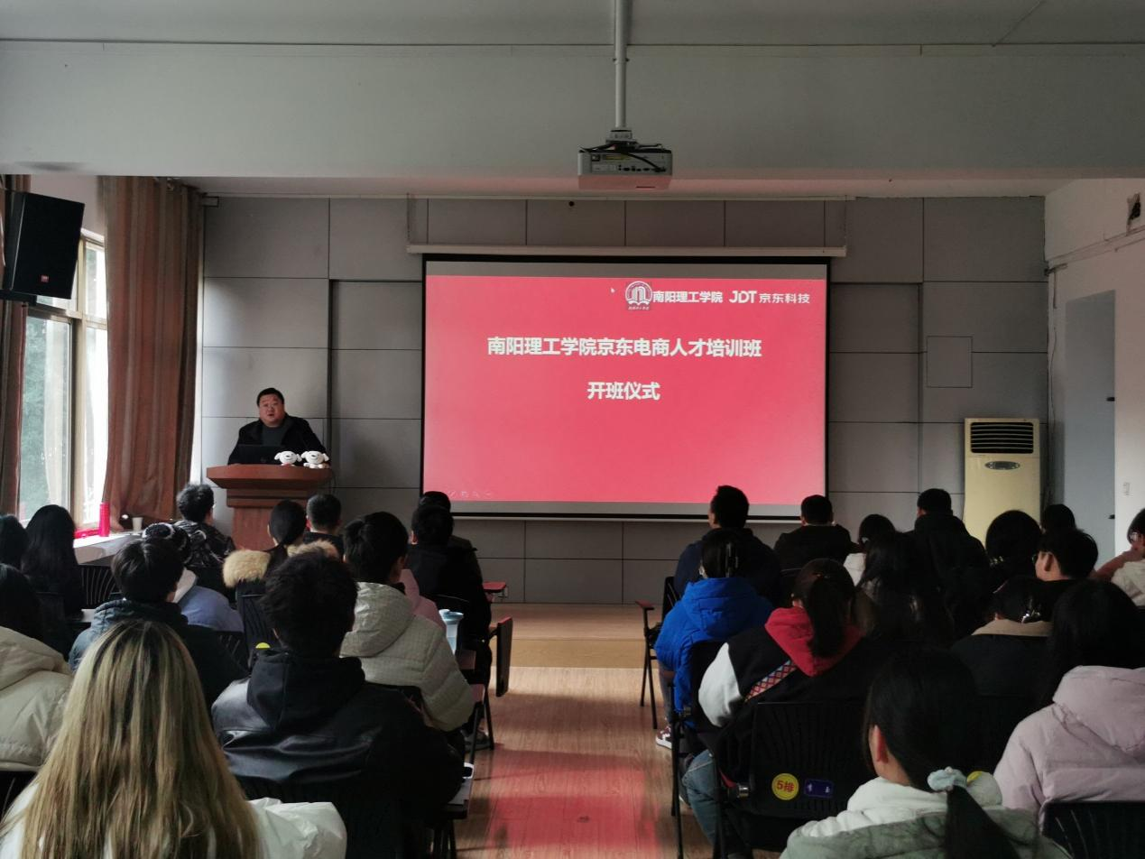 培训班是南阳市政府与京东集团开展战略合作的一项重要内容,分为教师和学生两个类别。本期培训班主要针对在校学生,我校电子商务专业高年级学生共有一百二十余位同学报名参加。培训班基于京东真实项目研发,以岗位引导、项目驱动为出发点,内容聚焦直播电商的运营管理,强化实操能力,既有课堂教学,又有实景演练;由京东电商学院一线工程师现场授课,考核合格后颁发由京东认证的电商运营管理师证,意在夯实新媒体电商理论的基础上,突出培养并提升学生的动手能力,并强化学生的就业能力。