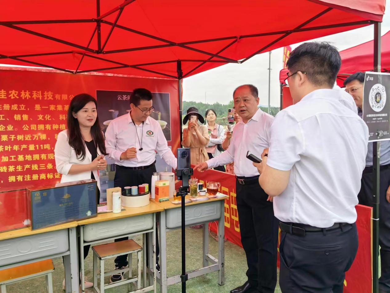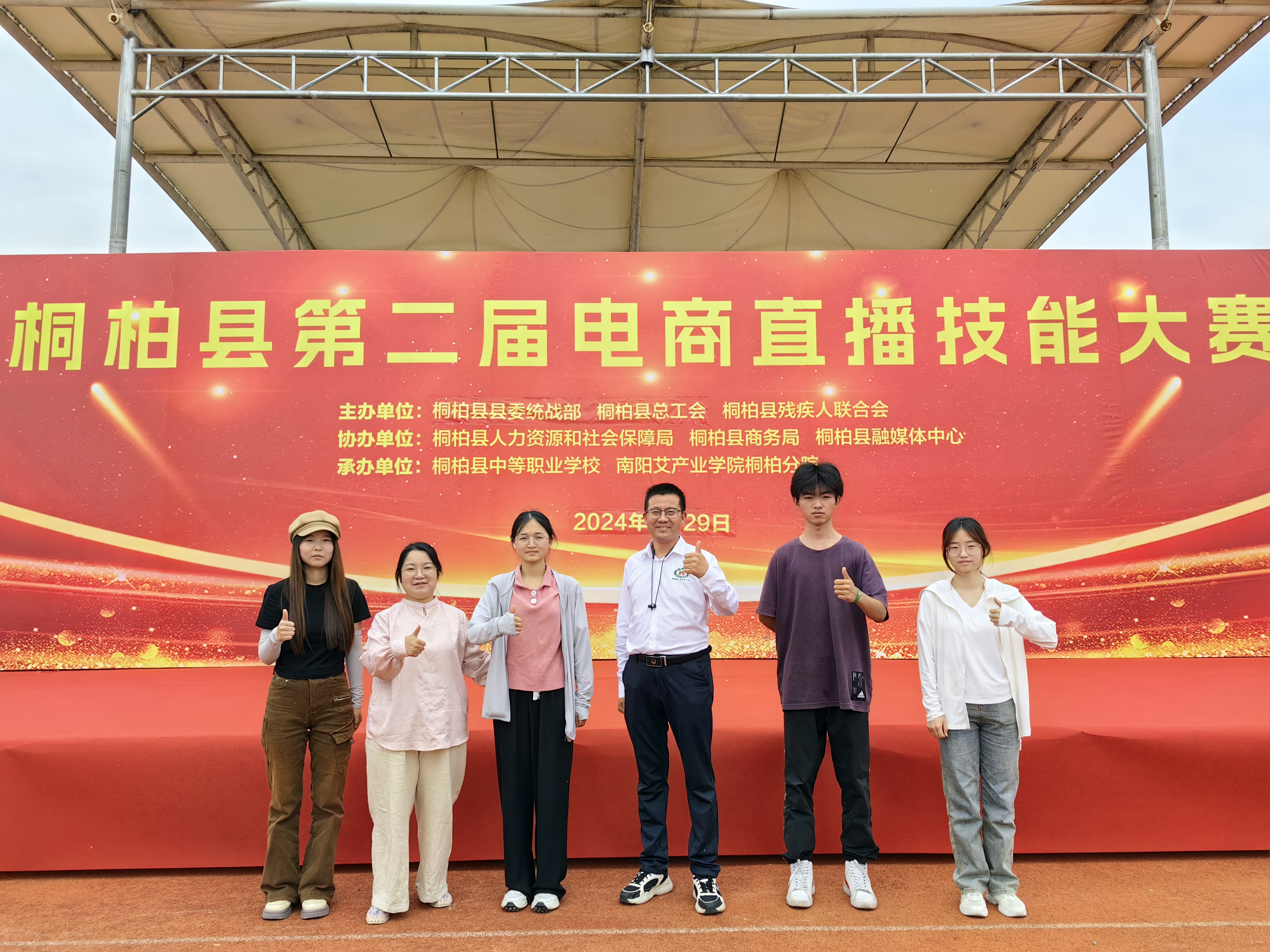 本网讯(通讯员/刘田田)5月29日,受合作企业南阳和佳农林科技有限公司邀请,yl6809永利官网集团逾新茶艺社负责人高淯老师带领茶艺社骨干社员学生一行6人参加桐柏县第二届电商直播技能大赛服务工作。