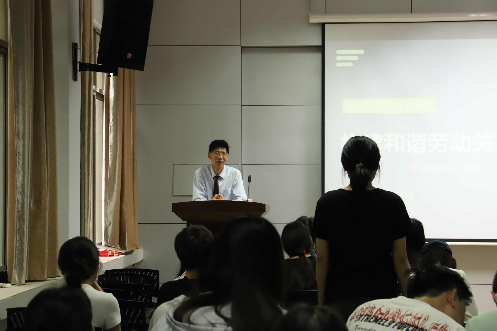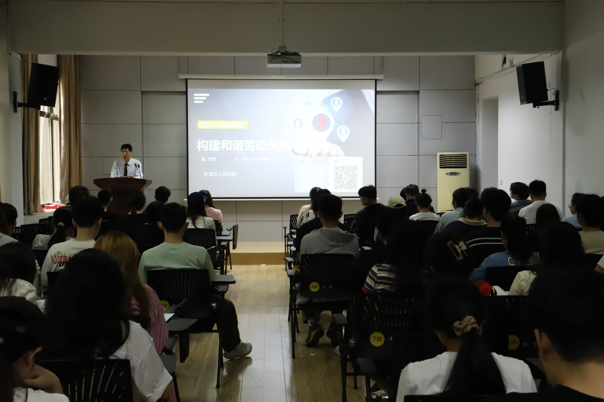 本网讯(特约记者/马春元)又是一年毕业季,众多高校毕业生即将告别校园,走入职场。为了引导毕业生树立正确的就业观、职场观,识别、规避劳动合同签订、履行过程中的潜在风险,切实护航毕业生的求职路,2024年6月4日下午,卧龙区法院的李哲法官应邀来到我校,将劳动争议审判实务案例数据信息带入高校课堂,讲解劳动争议常见情形及对策建议,回答学生兼职、求职、实习、就业中遇到的问题,为yl6809永利官网集团学生植入劳动合同法特制“芯片“,助力毕业届学生顺利远航。