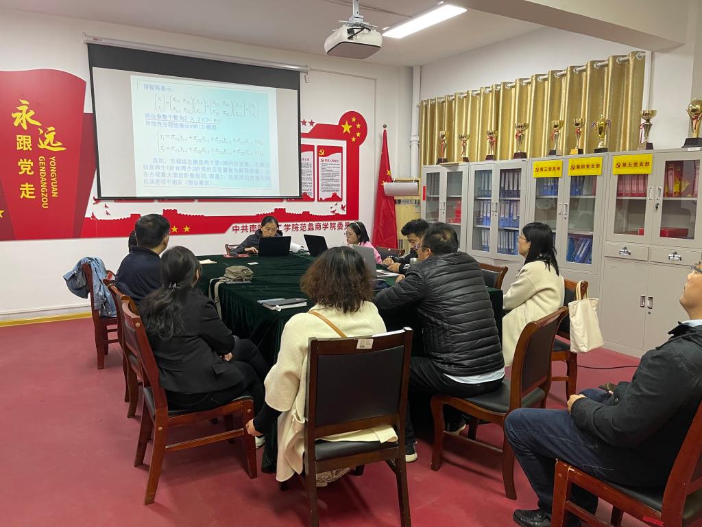 绿色发展科研团队:10月19日晚上6:00 在1434会议室举行了学术活动。王聪艺、孙梦忆、张永梅分别作了主题为农业数字化、出口的环境效应、VAR模型及其应用的学术报告。