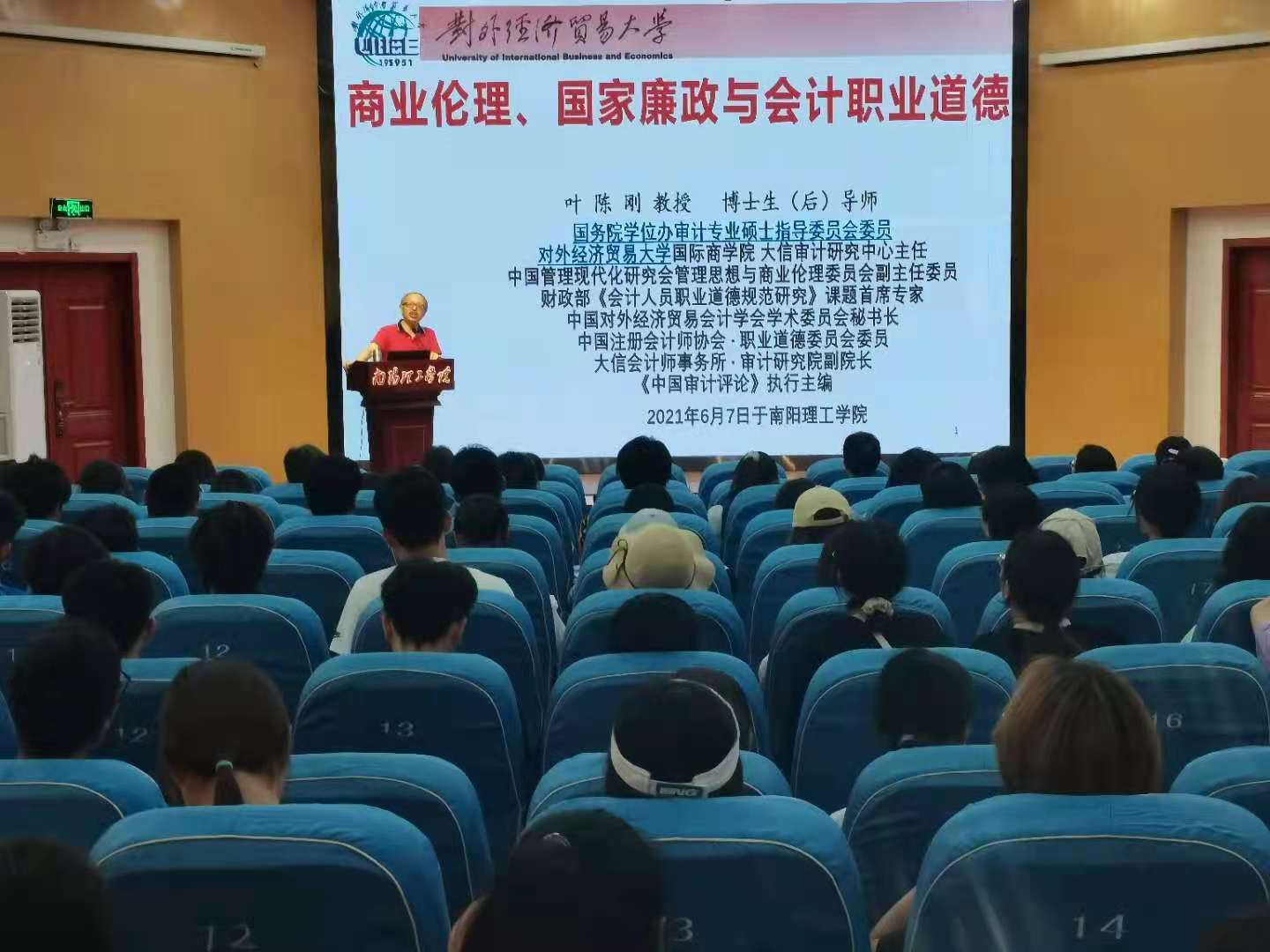 本网讯(特约记者/李浩)6月7日,yl6809永利官网集团举行商圣大讲堂学术报告会,会计之友杂志社笑雪总编、对外经济贸易大学叶陈刚教授分别做了学术报告,学院部分专业教师和相关专业学生参加了报告会。