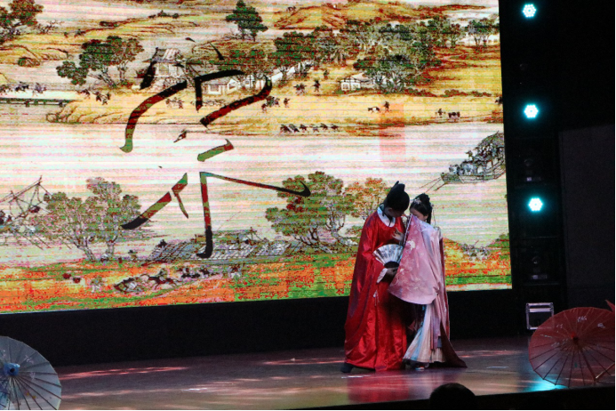 图为汉服情景秀与歌曲《一眼千年》,罗衣飘飘,万古留风,一眼千年。